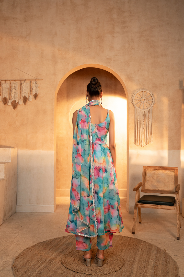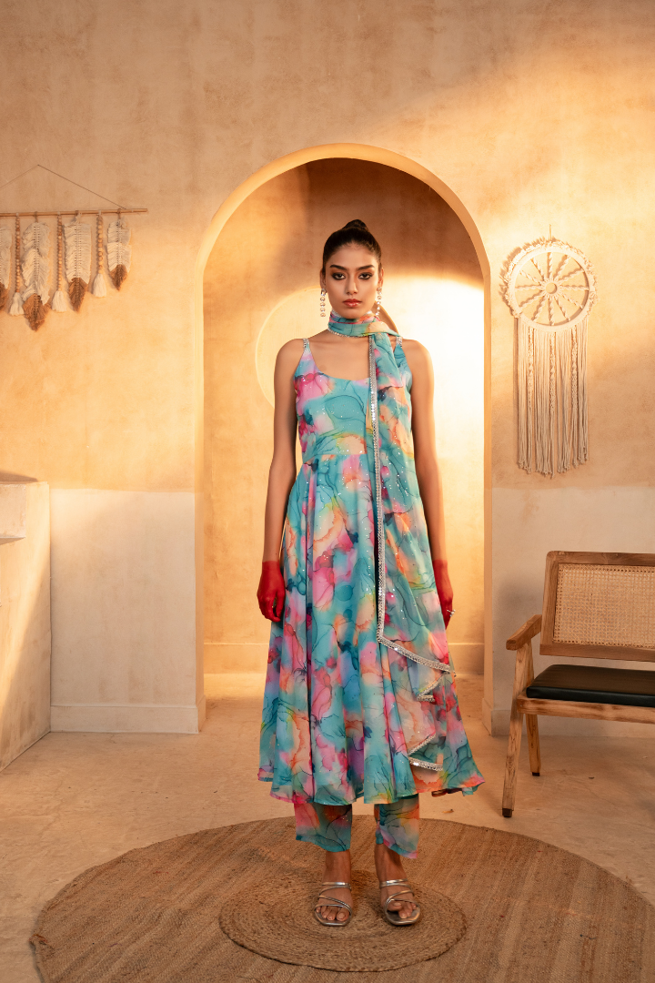 - Classic Anarkali silhouette with a contemporary twist