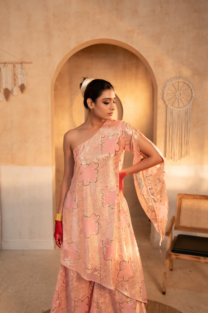 Embrace the passionate charm of the Tammanna - Mohabbat Plazo Set. Crafted from the luxurious georgette fabric, this stunning ensemble features a captivating red hue that radiates an aura of love and desire. The flowing plazo silhouette, with its flared and dramatic legs, creates a mesmerizing look that will leave a lasting impression. Whether you're attending a special occasion or adding a touch of romance to your everyday style, this Tammanna creation is a versatile choice that will make you feel truly captivating.