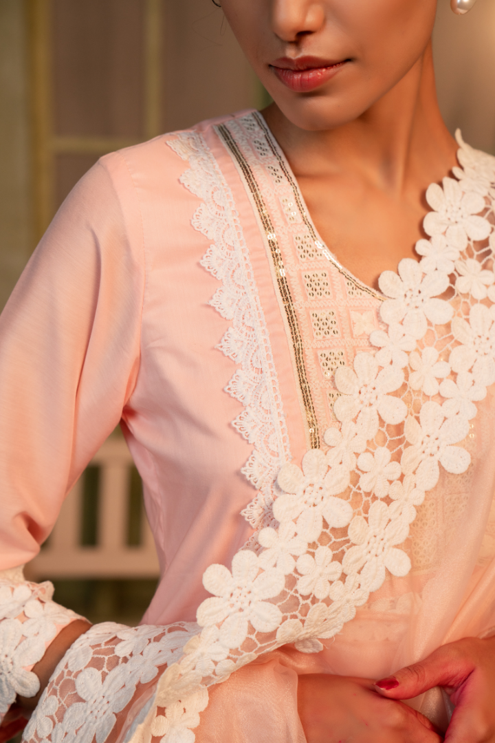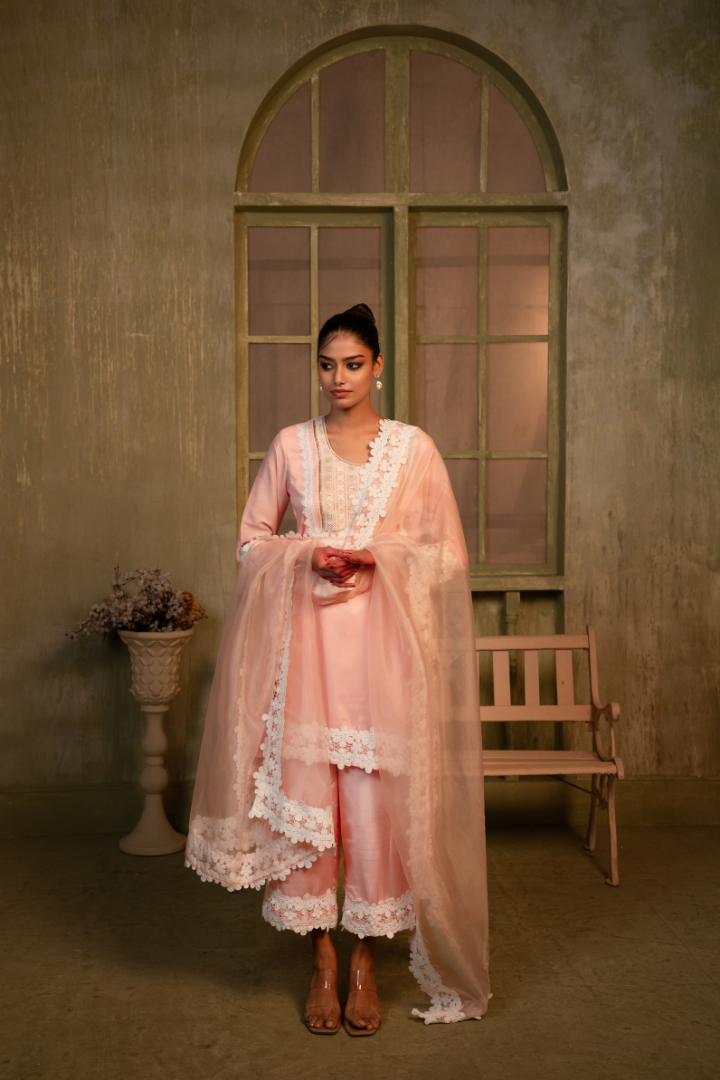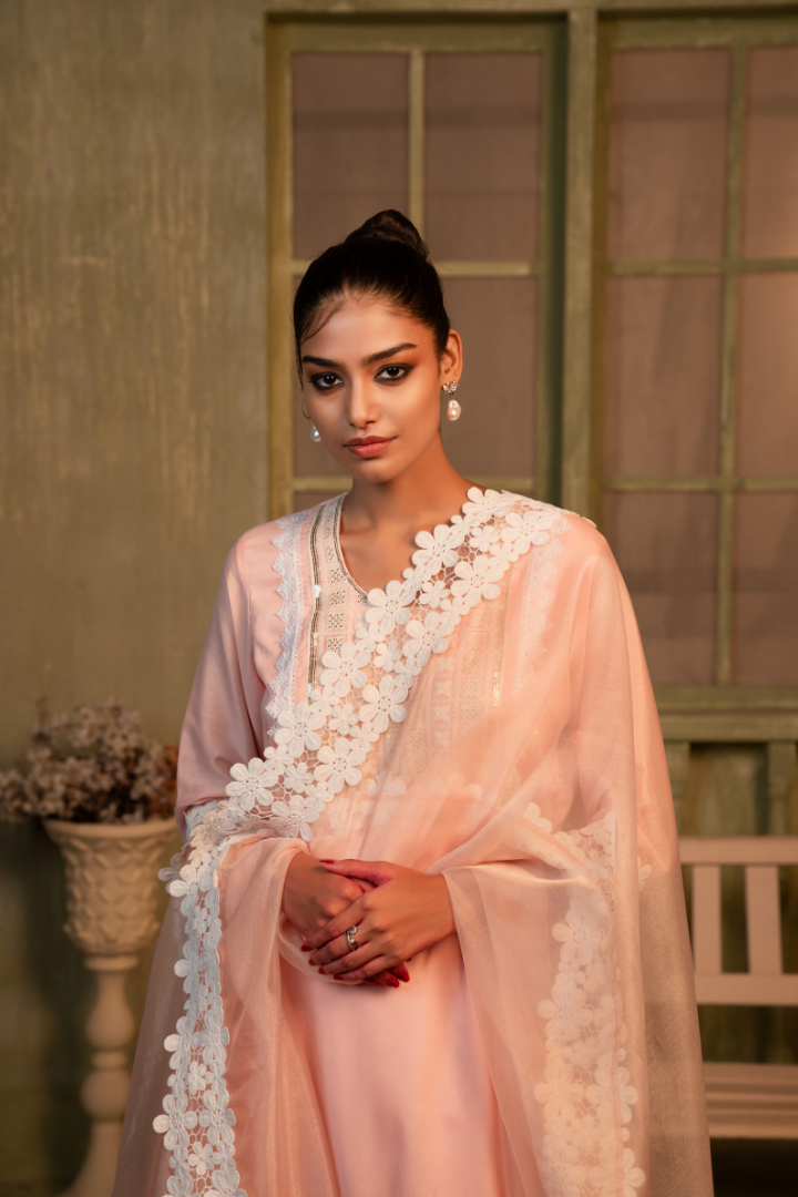 Embrace the timeless charm of the Tammanna - Rustique Croshay. Crafted from a captivating blend of crape silk and organza fabrics, this stunning ensemble features a unique crochet-inspired design that adds a touch of rustic elegance. The flowing silhouette and intricate details create a mesmerizing look that will leave a lasting impression. Whether you're attending a cultural event or elevating your everyday ethnic wear, this Tammanna creation is a versatile choice that will make you feel truly distinctive.