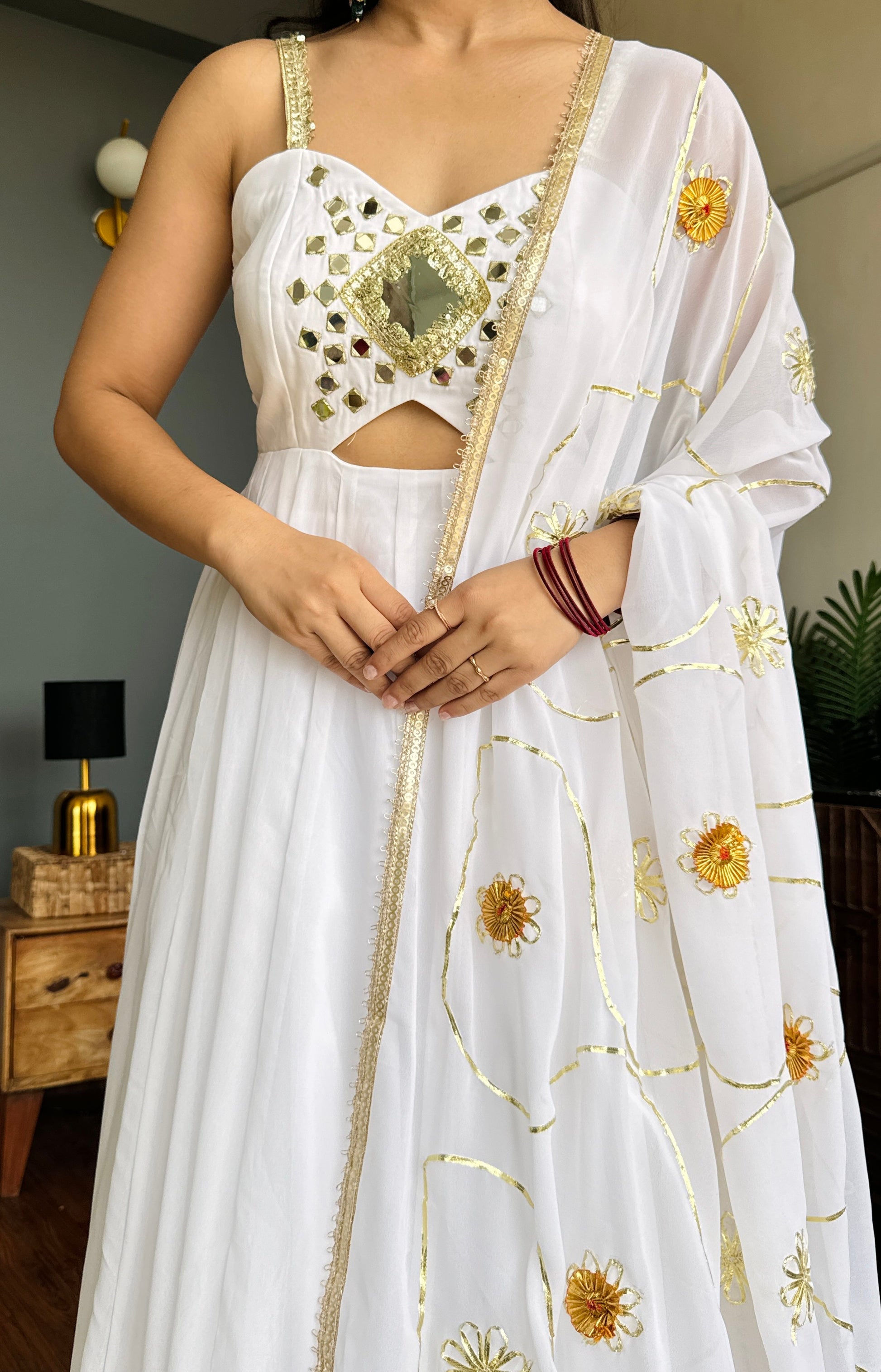 White-gold Anarkali in Mal cotton & Chanderi silk blend